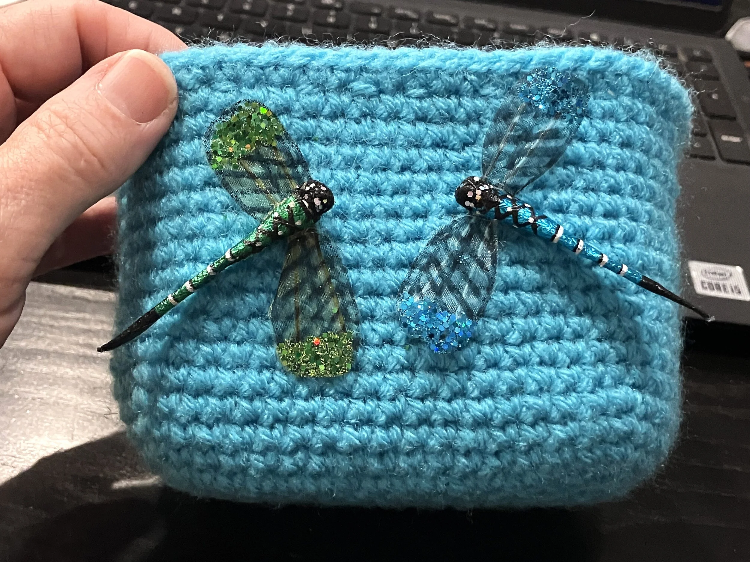 Val from Road Gypsies has a pattern for this sweet plant pot that she added pretty little dragonfly embellishments to.