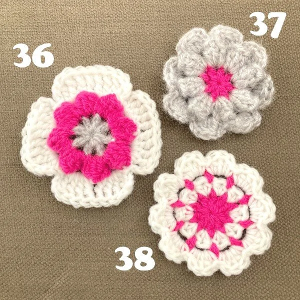 In the course of my challenge I was able to find and try lots and lots of crochet flower patterns, 40 in all so I thought you’d like to see them collected together. A couple of them are duplicates but that’s where I made a mistake and misread the pattern! Mostly this happened due to the difference with UK and US crochet terms, I’m normally pretty good at checking first but sometimes mistakes happen! Occasionally I just misread the pattern, but if the result was a sweet flower I thought it was worth including here.