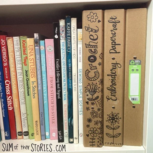 It wasn’t until I popped the pretty ring binders onto the shelf that I realised the writing should really go the other way to match my craft books. Doh! I never noticed which way the writing on the spines of books goes before, probably another one of those things that everyone knows but me!