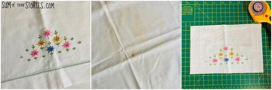 I ended up trimming the embroidery pretty close and the rest of the pillowcase got turned into rags.