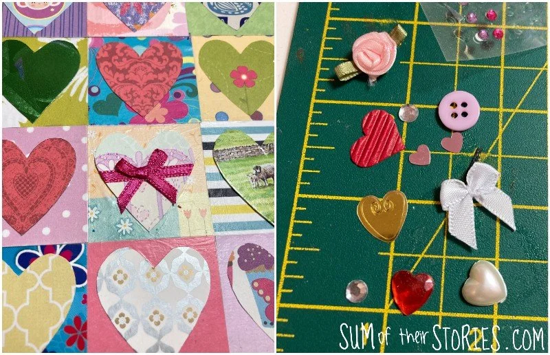 You could stop at this point, a pretty hearts on squares collage, or add some extras like I did.