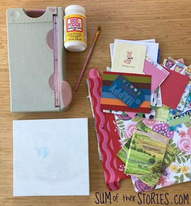 This project could be easily tweaked to upcycle special greeting cards instead of the papers I used here. Any special occasion could be commemorated with it’s own piece of art. Wedding, engagement or anniversary cards would be perfect to reuse.