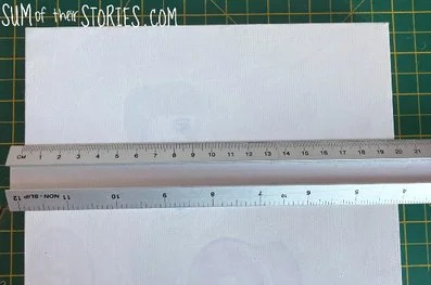 You need to do a bit of simple maths now. Find a number which divides nicely with the size of your canvas so you can create even squares. I went for 4cm squares, so I could have 5 x 5 on my 20cm canvas.