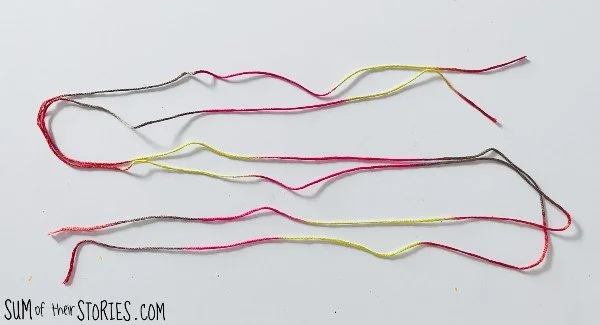 You separate out 2 strands of the 6 to work with. In case you don’t already know the easiest way to do this is to pull one strand, then another and then recombine them.