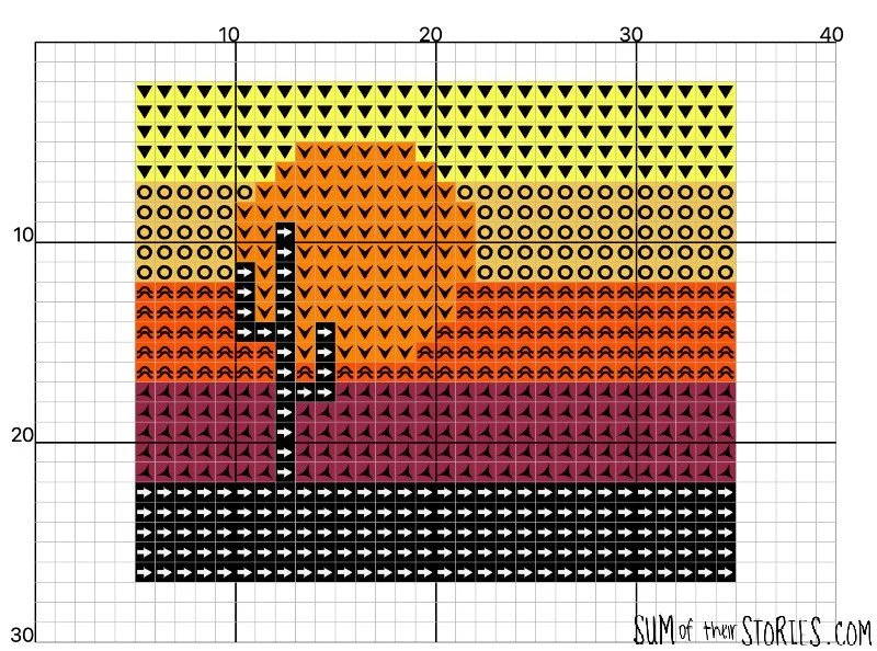 I must have designed and stitched this sunset and cactus chart at least 10 years ago, maybe even longer, so it’s nice for it to see the light of day and to be able to share it at last!