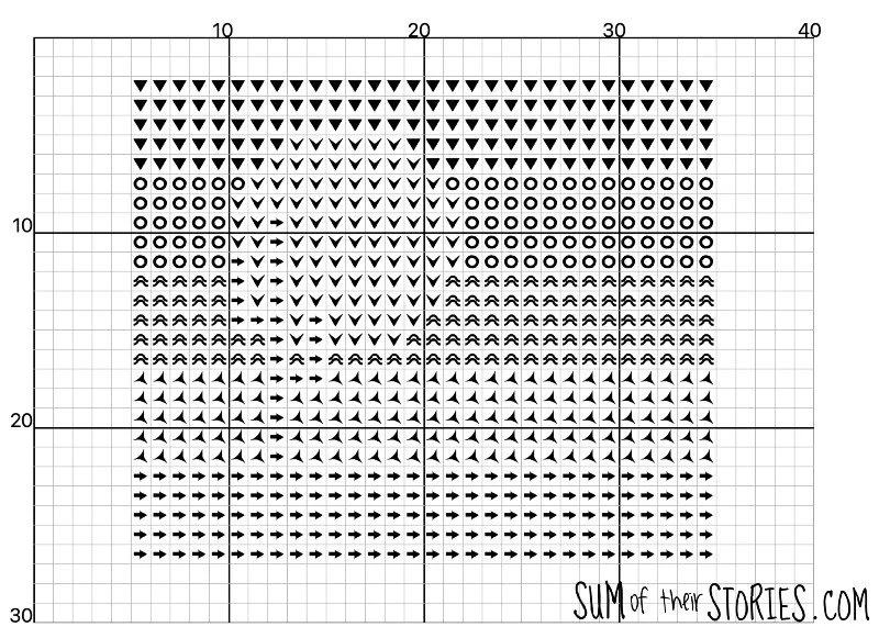 The simple colour blocks make it nice and easy to follow for anyone new to counted cross stitch and the mini size means it won’t take too long to finish either.
