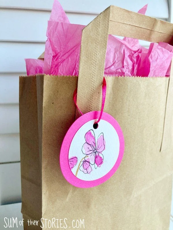 If your painting has marks of any sort on the back you can still turn it into lovely gift tags but you’ll need to cover the back.